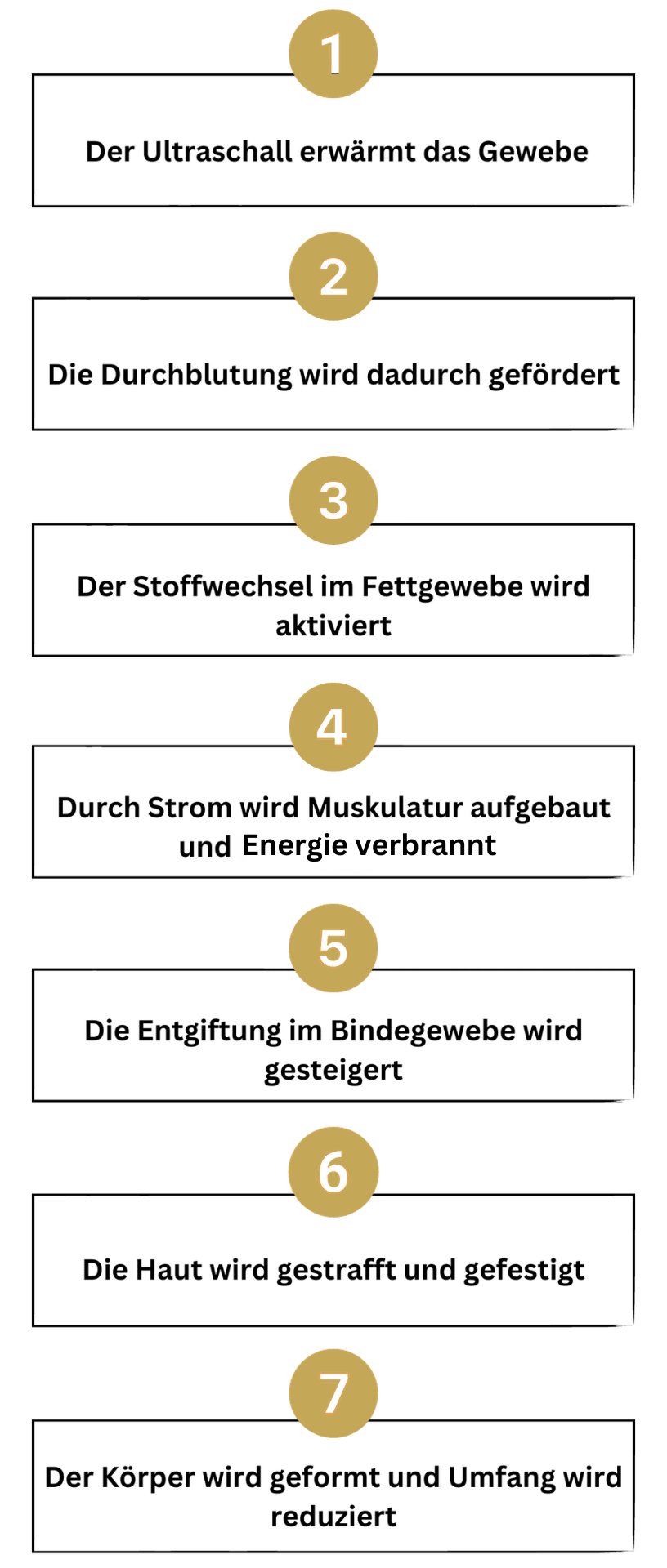 Unser Erfolgs-Konzept basiert auf dem Einsatz von Ultraschall, EMS & Tiefenwärme und führt dich in wenigen Schritten zu deinem Traumkörper:
